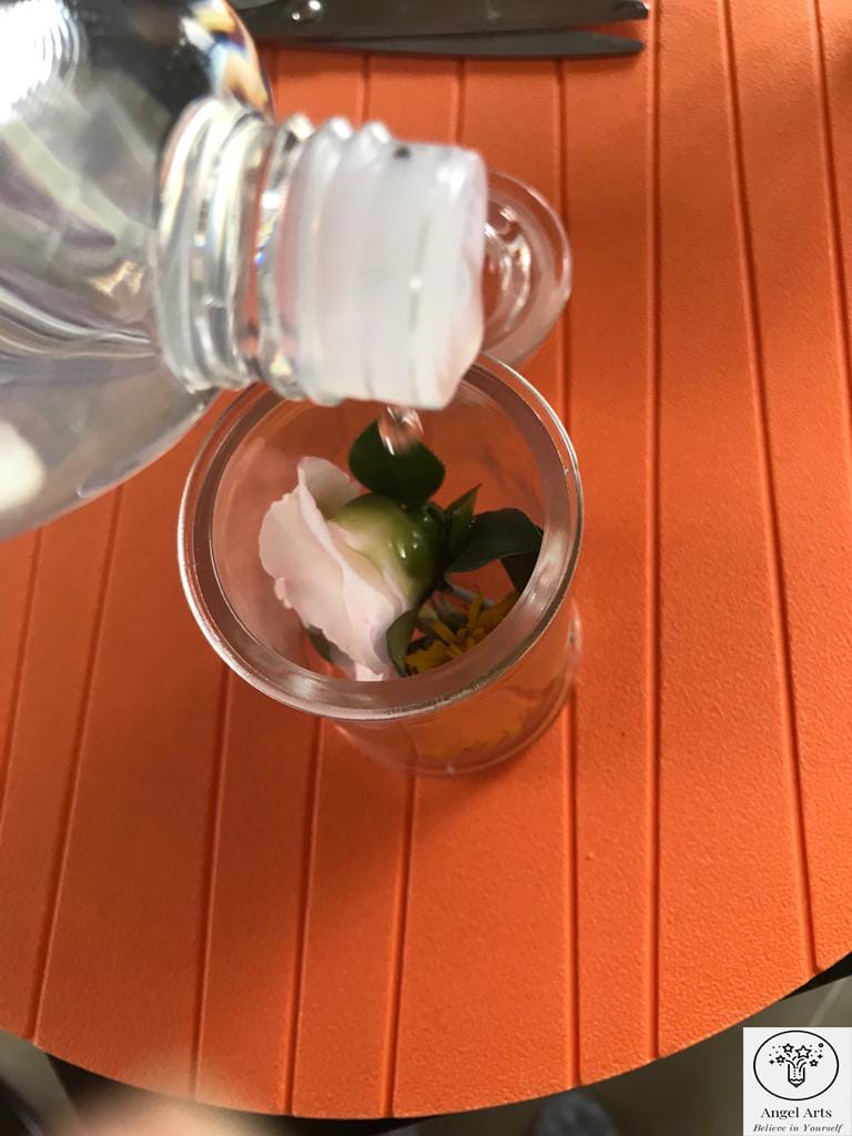 You can arrange the flowers between the acrylic sheets. Stick the flowers using Elmers white glue. Finally, press the acrylic sheets together and tape the sides of the sheets.