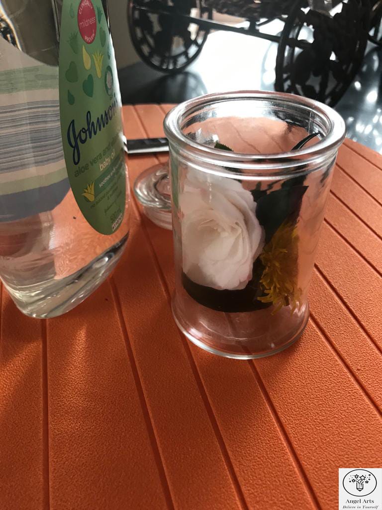 You can preserve leaves and flowers using a bottle or jar with Baby oil.